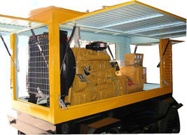 沙湖原种场柴油发电机组/移动柴油发电机组设计独具创新,机动性高、重心低、制动安全、制造精良、外形美观。 沙湖原种场拖车车架采用槽梁焊接成框架结构,节点选择合理、强度高、刚性好;同时装有钢板弹簧悬架结构;拖车采用高度可调节插销式牵引架,适用于各种高度牵引车;采用圆形钢管焊接直通式车轴,结构紧凑,安全可靠;车架四角设有机械式支撑装置,配备惯性行车制动、驻车制动和脱离应急制动,确保机组在各种状况下的安全;车架前端设有支撑轮,具备承受机组垂直载荷的功能的同时还具备导向功能;整车配备转向和刹车指示灯,同时装有尾灯标准插头